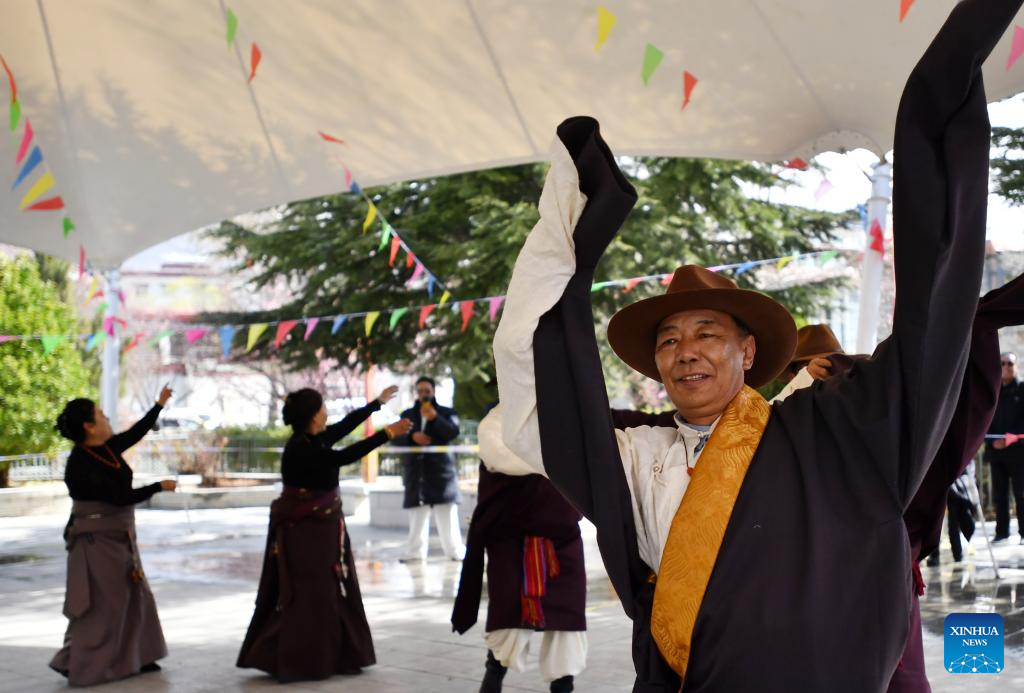 People attend a celebration for the 15th Serfs' Emancipation Day in Xigaze, southwest China's Tibet Autonomous Region, March 28, 2023. The 15th Serfs' Emancipation Day falls on Tuesday. (Photo by He Jinlong/Xinhua)