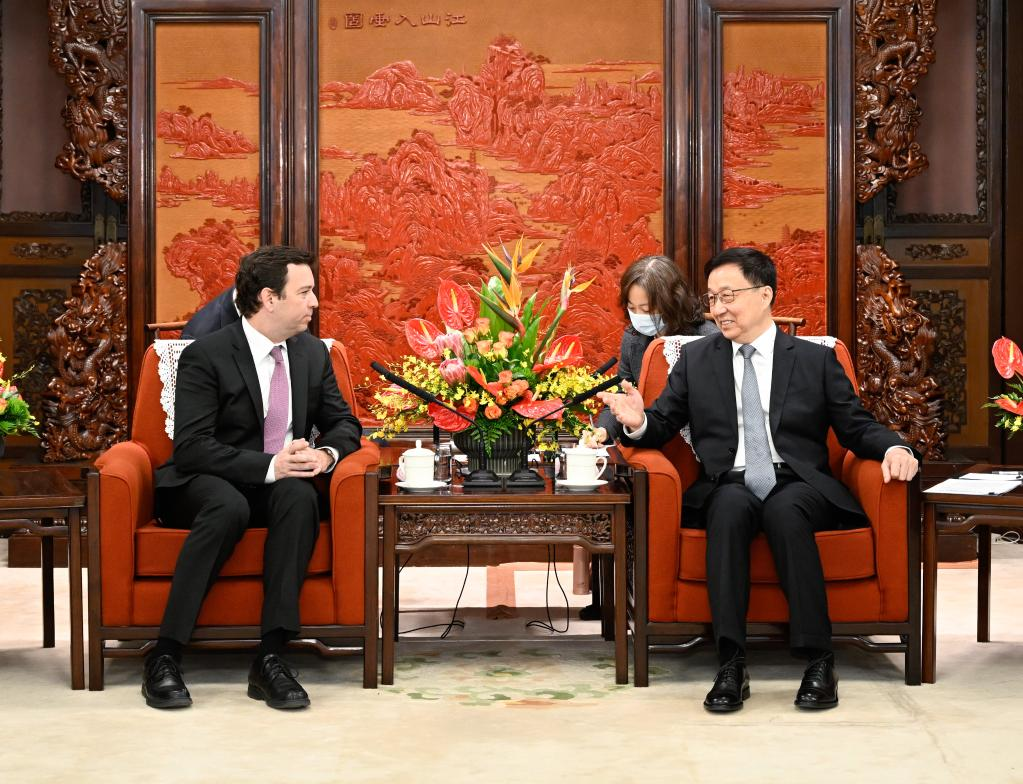 Han made the remarks on Monday and Wednesday during his meetings with leaders of multinationals who attended the China Development Forum 2023 held in Beijing.