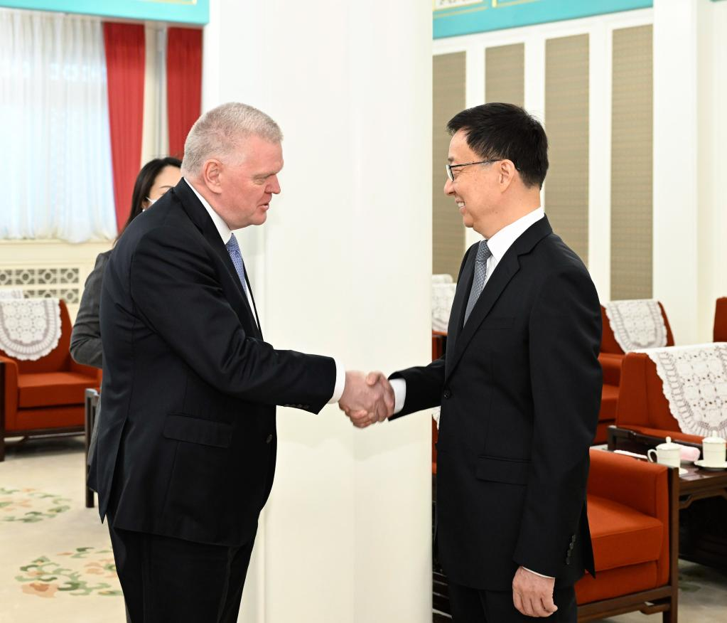 Chinese Vice President Han Zheng meets with HSBC Group Chief Executive Noel Quinn, who attends the China Development Forum 2023, in Beijing, capital of China, March 27, 2023. (Xinhua/Shen Hong)