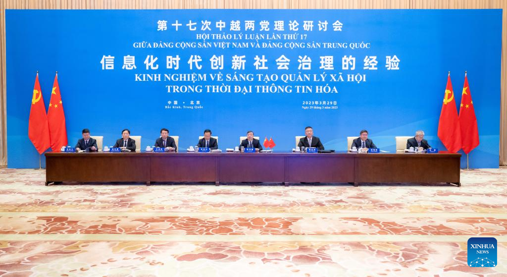 BEIJING, March 29 (Xinhua) -- The Communist Party of China (CPC) and the Communist Party of Vietnam (CPV) held their 17th theory seminar on Wednesday via video link, exchanging experience gained in the development of new approaches to social governance in the era of informatization.