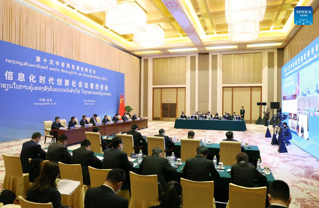 BEIJING, April 4 (Xinhua) -- The Communist Party of China (CPC) and the Lao People's Revolutionary Party (LPRP) held their 10th theory seminar on Tuesday via video link, exchanging experience gained in the development of new approaches to social governance in the era of informatization.