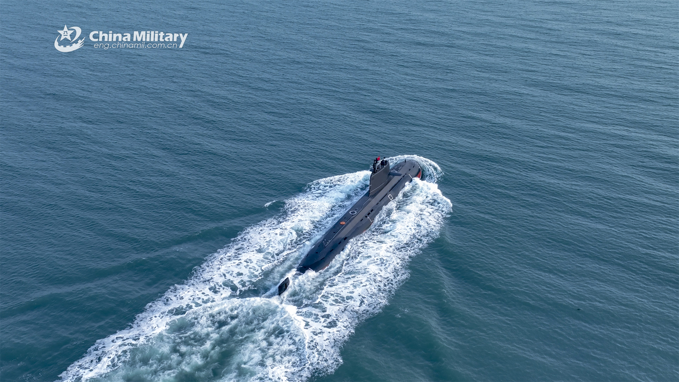 A submarine attached to a naval submarine flotilla under the PLA Northern Theater Command steams in the sea during a training exercise on March 21, 2023. (eng.chinamil.com.cn/Photo by Wu Haodong)