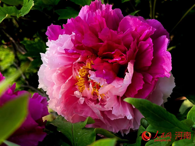 Photo shows a blooming peony flower in Luoyang city, central China’s Henan Province. (People’s Daily Online/Wang Pei)