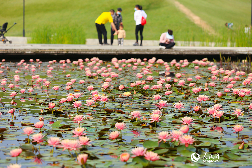 Photo shows blooming water lilies in Haiwan Park, Xiamen city, southeast China's Fujian Province, March 22, 2023. (People's Daily Online/Chen Bo)