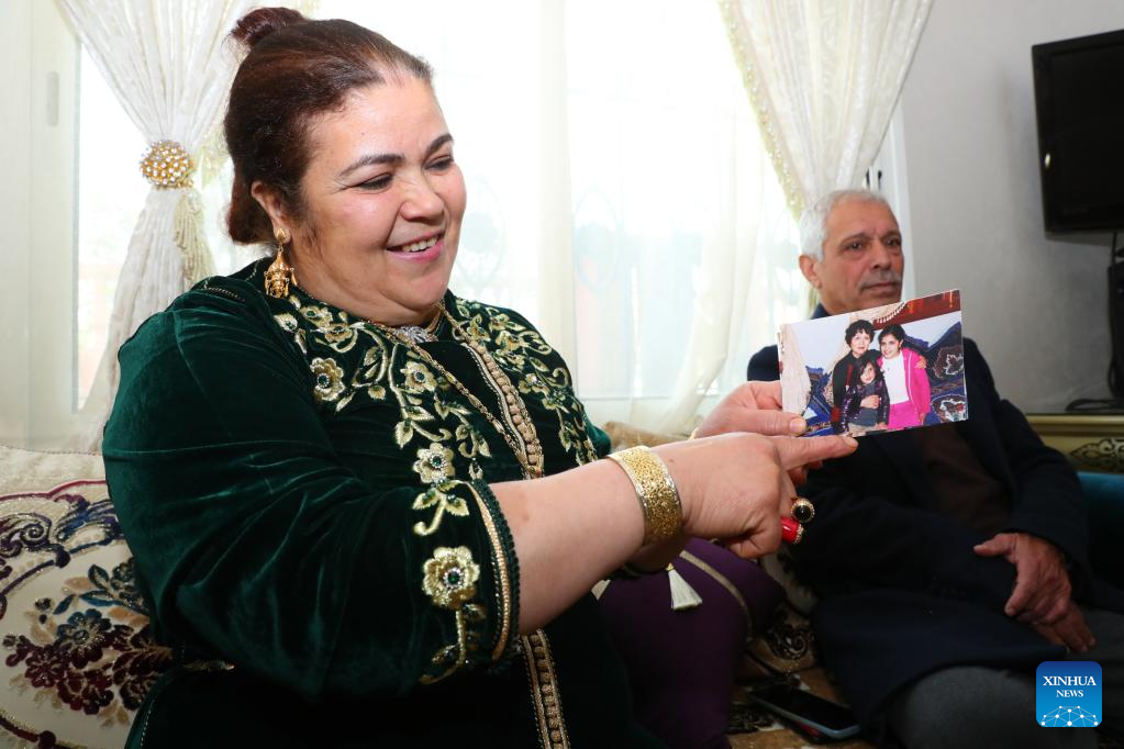 Fatima Laatiq (L), a resident in Settat, shows an old photo that her family took with a Chinese doctor at her home in Settat, Morocco, on Feb. 27, 2023. For nearly half a century, Chinese doctors, mainly obstetrician-gynecologists, have earned a sterling reputation for their professionalism and dedication in some remote areas of Morocco. Many pregnant women from across the country come to seek medical advice and childbirth care from them. (Xinhua/Sui Xiankai)