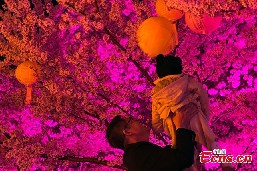Cherry blossoms with colorful lights dazzle Yantai (2)