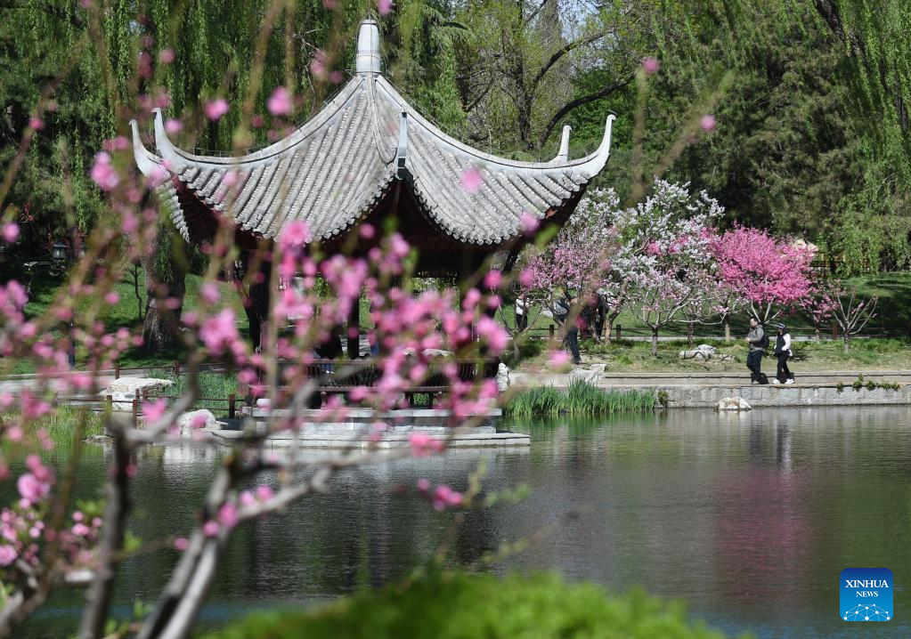 Tourists have fun at Taoranting park during good weather in Beijing, capital of China, April 7, 2023. (Xinhua/Luo Xiaoguang)