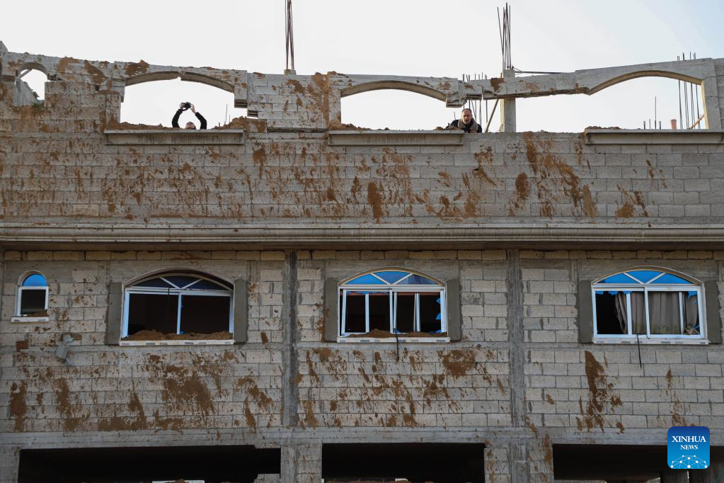 GAZA, April 7 (Xinhua) -- Magdy Abu Neama became homeless after his two-storey house in the Gaza Strip was severely damaged in the shock waves after Israeli warplanes hit a nearby target late Thursday night.