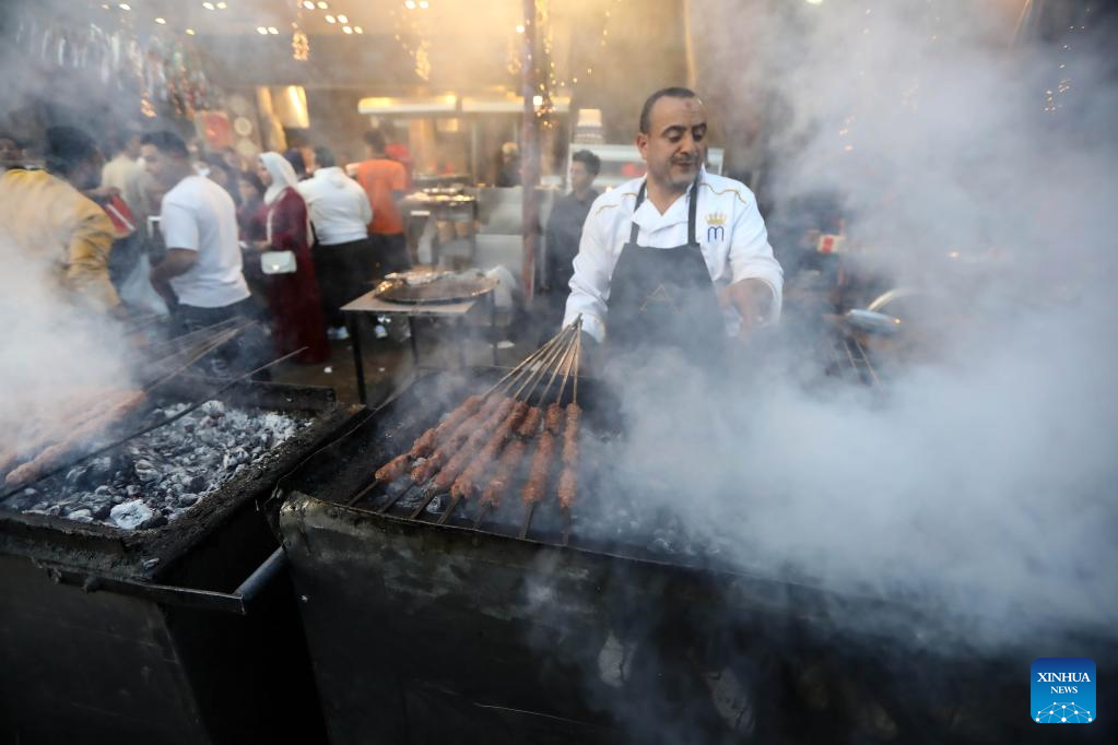A cook barbecues meat for iftar meals during Ramadan in Cairo, Egypt, on April 7, 2023. (Xinhua/Ahmed Gomaa)