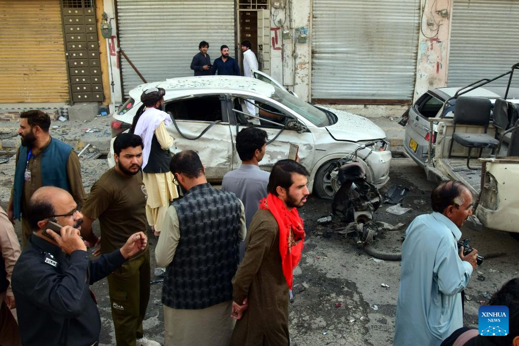 ISLAMABAD, April 10 (Xinhua) -- At least four people, including two policemen, were killed and 15 others injured in a blast on Monday in Quetta, the provincial capital of Pakistan's southwest Balochistan province, police and health officials said.