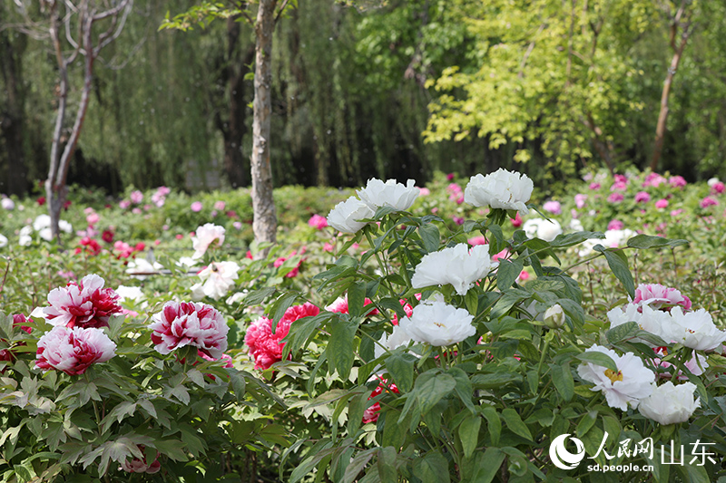 Photo shows blooming peony flowers at the Caozhou Peony Garden in Mudan district, Heze city, east China’s Shandong Province. (People’s Daily Online/Liu Qi)