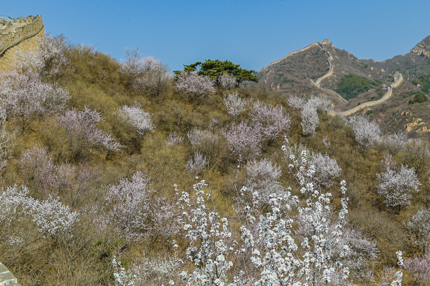 Photo shows blooming flowers at the Great Wall in Beijing. (Photo/Wang Shiqi)