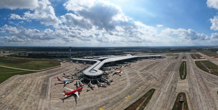 This aerial photo taken on Nov. 20, 2021 shows the expansion project of Haikou Meilan International Airport in Haikou, south China's Hainan Province. (Xinhua/Yang Guanyu)