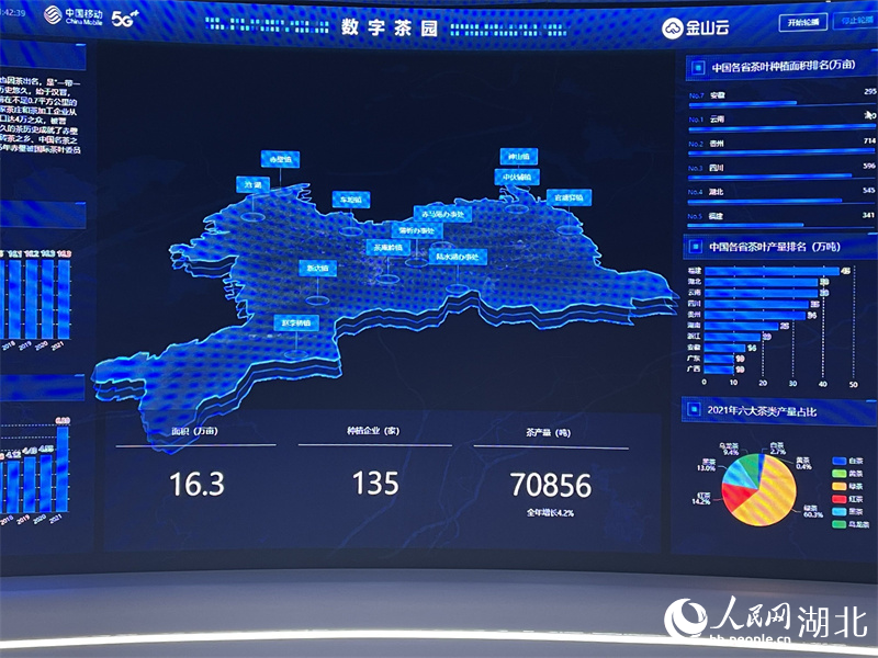 In the Yangloudong tea ecological industrial park in Chibi, a platform empowered by big data monitors temperature, humility, soil moisture content, and the growth of tea leaves at tea gardens.