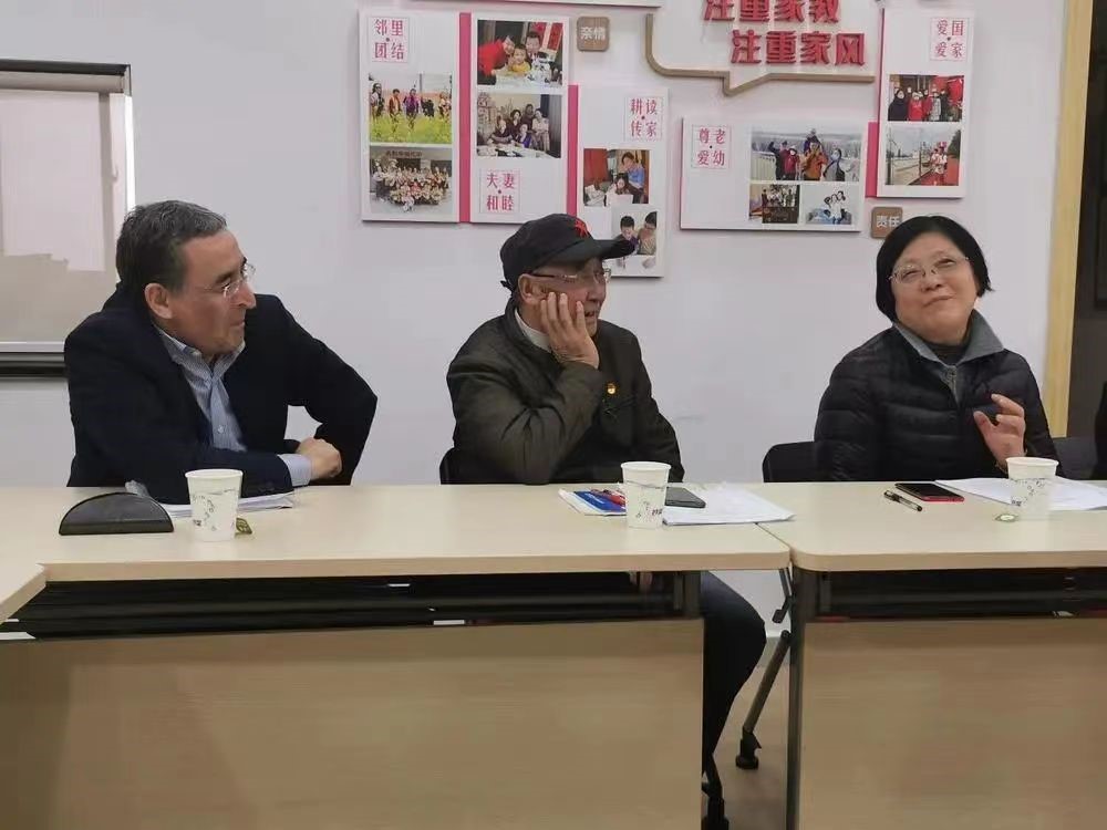 Mustafa Noyan Rona (left), a Turkish man living in Shanghai, joins a discussion on community affairs. (Photo provided by Mustafa Noyan Rona)