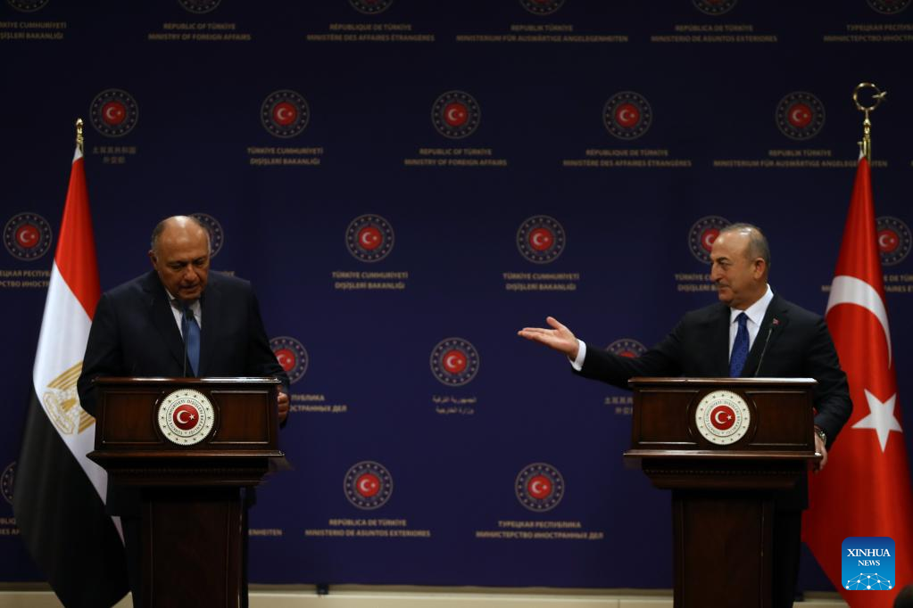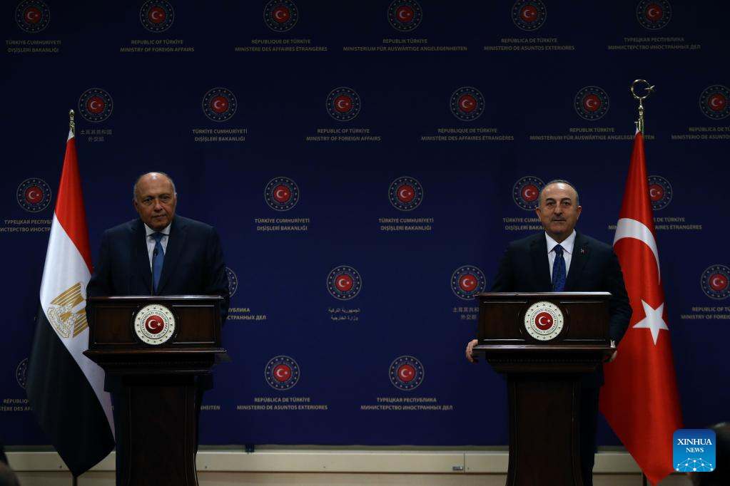 ANKARA, April 13 (Xinhua) -- Trkiye and Egypt will work closely on regional issues, particularly on Libya and Syria, Turkish Foreign Minister Mevlut Cavusoglu said on Thursday.
