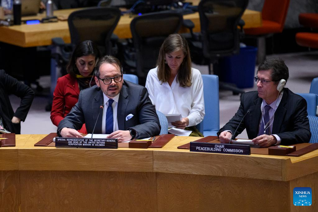 UNITED NATIONS, April 13 (Xinhua) -- The top UN envoy for Colombia, Carlos Ruiz Massieu, on Thursday called on armed groups in Colombia to engage in and promote dialogues with the aim of reducing violence and consolidating peace in the country.