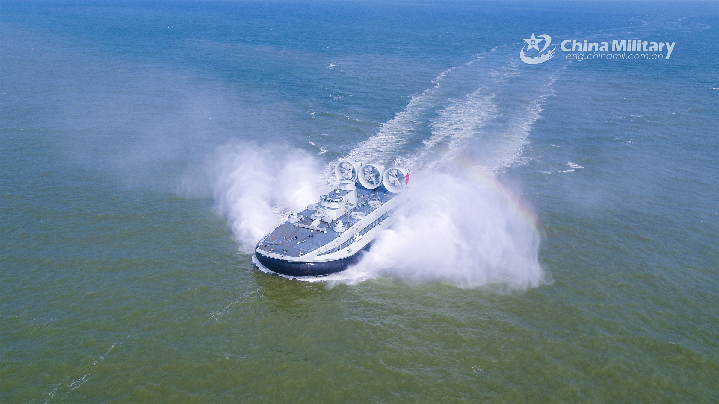 An air cushion landing craft attached to a naval landing ship group under the PLA Southern Theater Command sails on the sea during a three-day landing exercise in late March, 2023. (eng.chinamil.com.cn/Photo by Ze Tianyu)