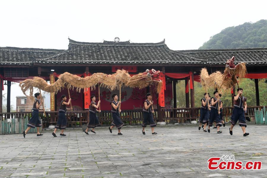 Straw dragon dance promotes Mulam ethnic tradition in Guangxi