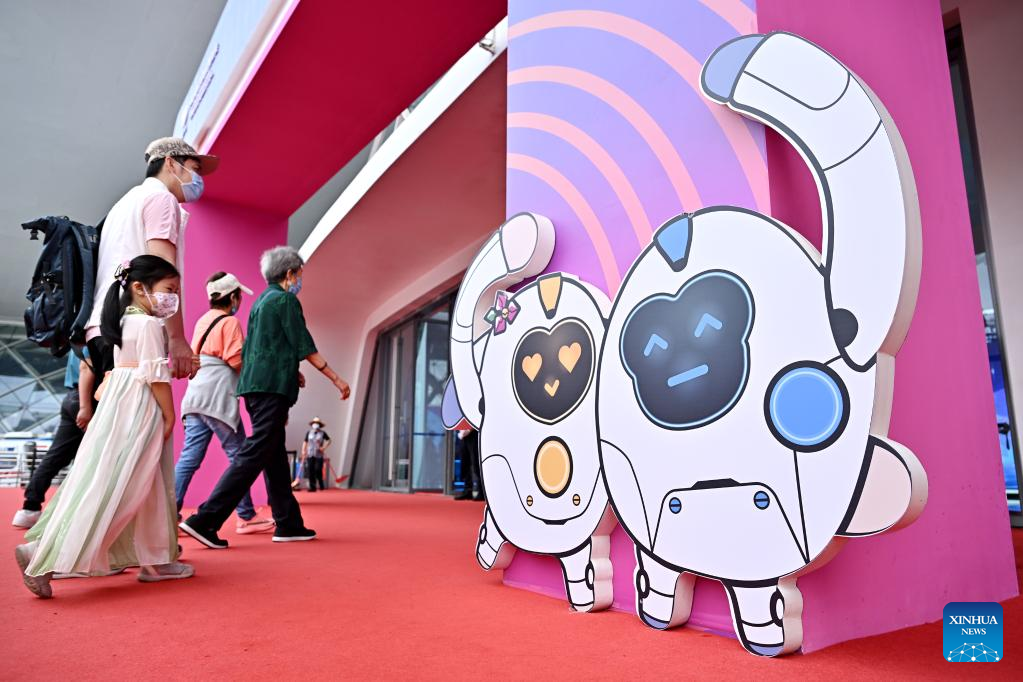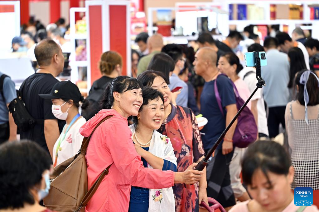 Visitors take a selfie at the third China International Consumer Products Expo (CICPE) in Haikou, capital city of south China's Hainan Province, on April 14, 2023. The expo opened to the public on Friday. (Xinhua/Li Xin)