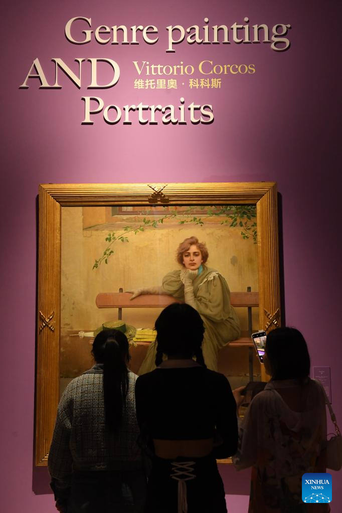 Visitors look at "Dreams" by Vittorio Corcos at the Hangzhou Pavilion of the Meet You Museum in Hangzhou, East China's Zhejiang Province, April 14, 2023. The Hangzhou Pavilion of the Meet You Museum officially opened on Friday. Two exhibitions featuring artworks of well-known Western artists including Vincent van Gogh and Claude Monet were launched for the public on the opening day. (Xinhua/Weng Xinyang)