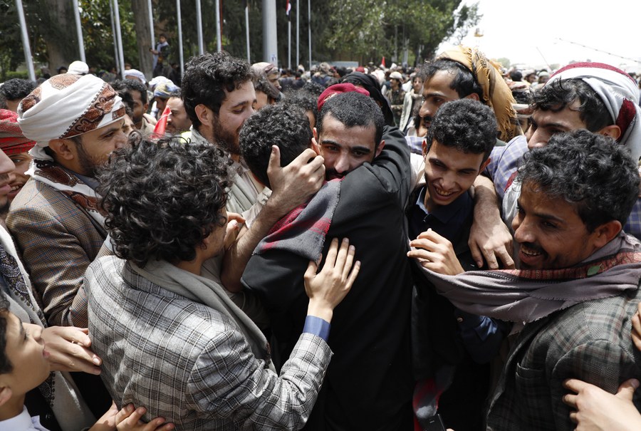 ADEN, Yemen, April 16 (Xinhua) -- In a significant step toward resolving the protracted conflict in Yemen, the country's warring factions successfully completed a massive exchange of prisoners on Sunday, with a total of 887 detainees swapped over three consecutive days.