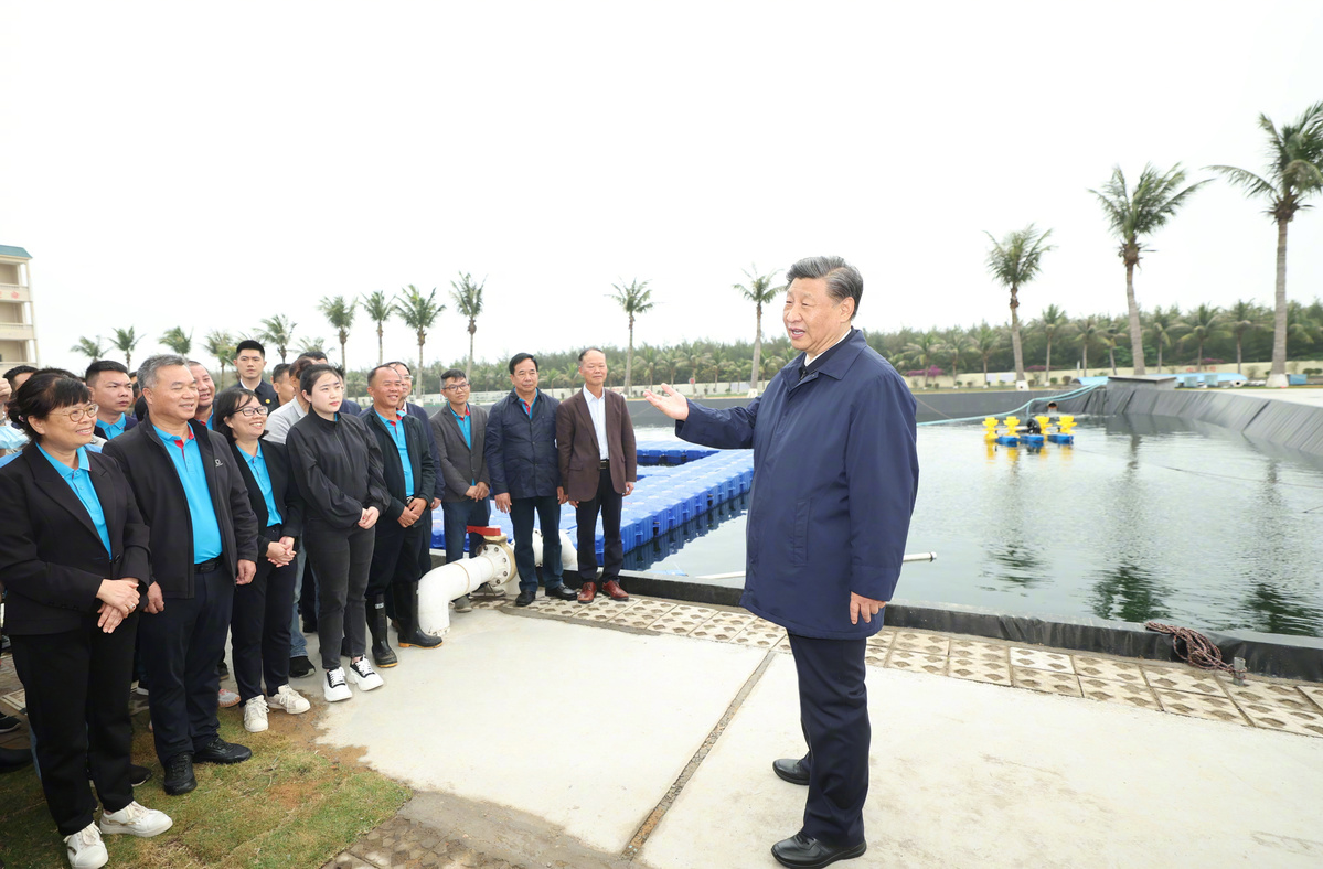 During his four-day trip to Guangdong province last week, Xi visited a mariculture base in Zhanjiang, inspecting advances in fish farming methods and speaking with researchers and fish farmers.