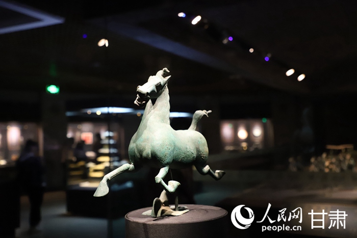 Photo shows the statue "Bronze Galloping Horse Treading on a Flying Swallow," which was created during the Eastern Han Dynasty (25-220 AD) and is now preserved in the Gansu Provincial Museum. (People's Daily Online/Huang Fan)