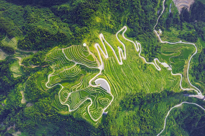Aerial photo shows the core planting area for berry tea in Zhangjiajie city, central China's Hunan Province. (Photo courtesy of the publicity department of the CPC Yongding district committee)