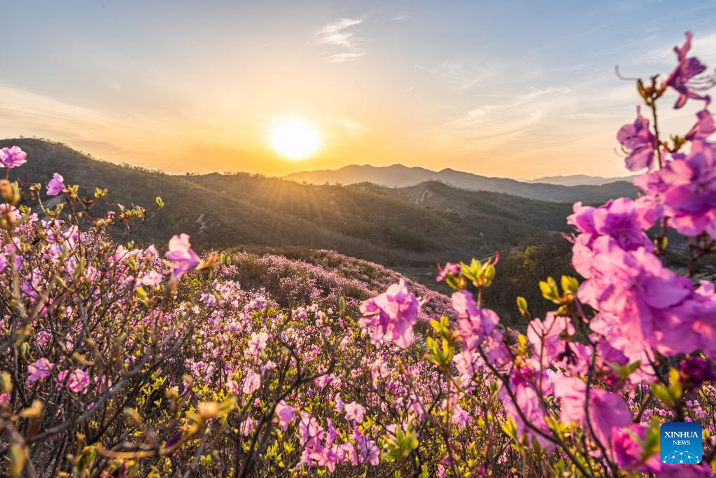 This photo taken on April 20, 2023 shows an azalea scenic spot in Huangling Village of Xiuyan Man Autonomous County, northeast China's Liaoning Province. (Xinhua/Yang Qing)