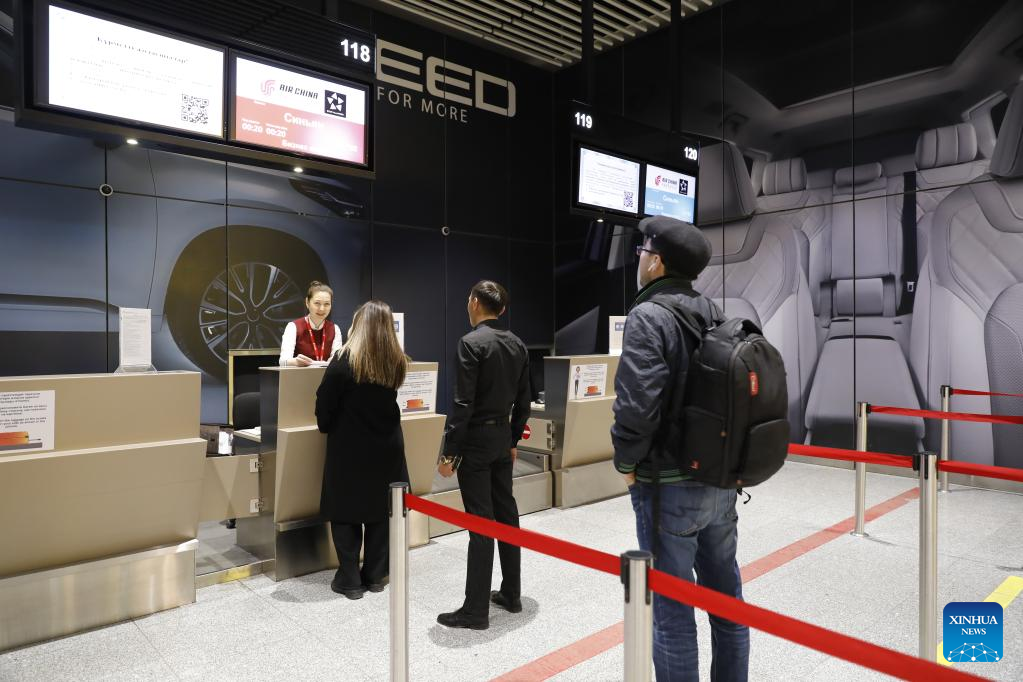 Passengers check in for a return flight on the Beijing-Xi'an-Astana route at the airport in Astana, Kazakhstan, April 21, 2023. (Photo by Kalizhan Ospanov/Xinhua)