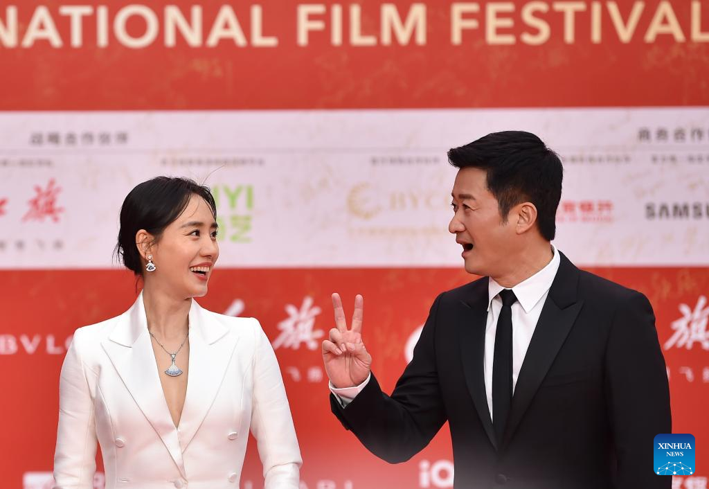 Actress Jin Chen poses for photos on the red carpet of the 13th Beijing International Film Festival in Beijing, capital of China, April 21, 2023. (Xinhua/Chen Zhonghao)