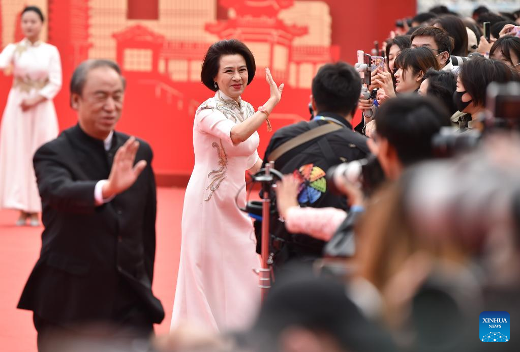 Peking Opera performer Chi Xiaoqiu (C) is seen on the red carpet of the 13th Beijing International Film Festival in Beijing, capital of China, April 21, 2023. (Xinhua/Chen Zhonghao)