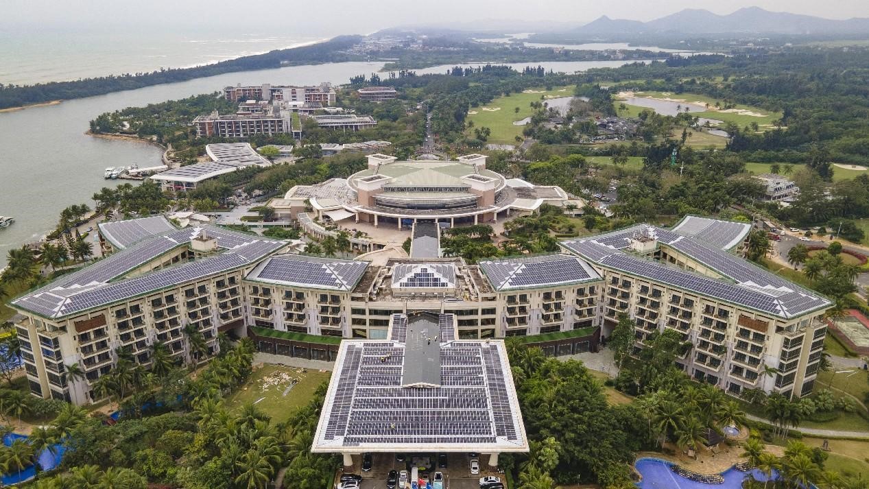 Solar panels are being installed at the Boao Asia Forum Hotel on Dongyu Island, Qionghai, south China's Hainan province, Feb. 26, 2023. (People's Daily Online/Meng Zhongde)