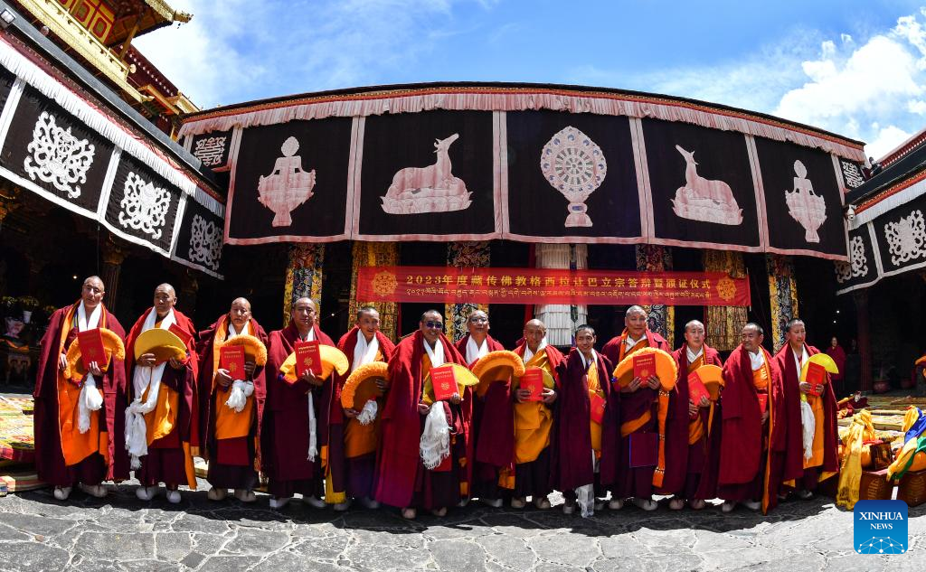 LHASA, April 23 (Xinhua) -- Thirteen monks obtained the degree of Geshe Lharampa, equivalent to a doctoral degree in modern education, on Sunday in southwest China's Tibet Autonomous Region.
