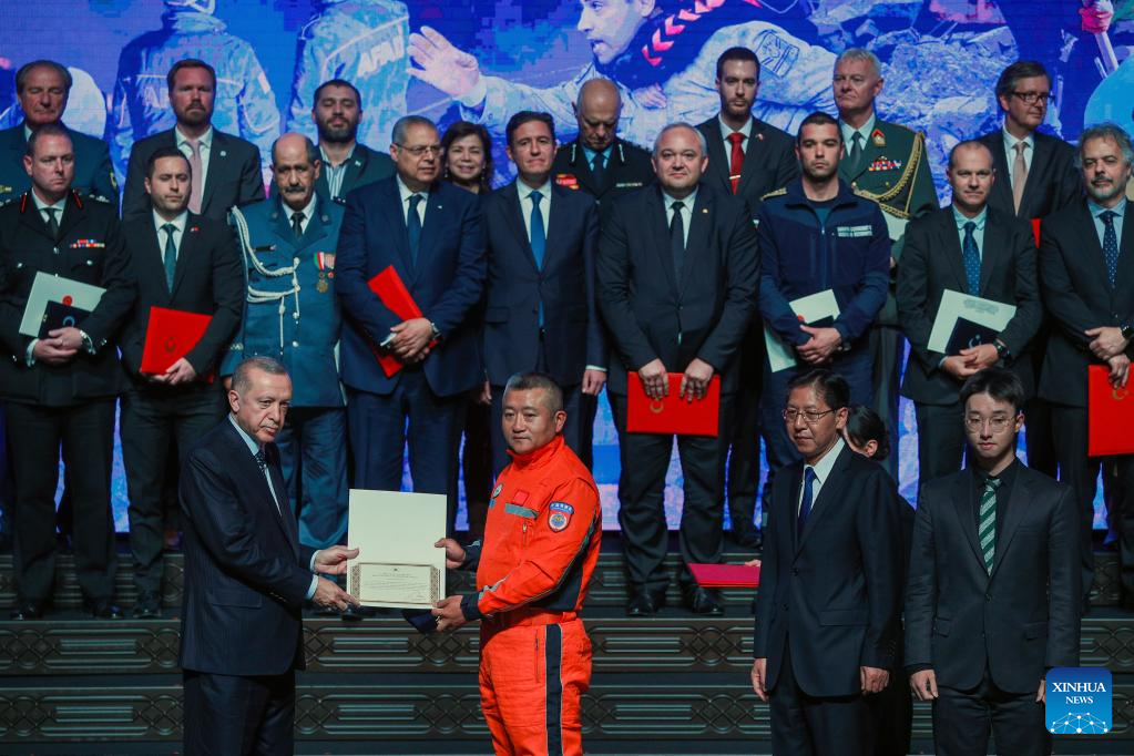 ANKARA, April 25 (Xinhua) -- Turkish President Recep Tayyip Erdogan on Tuesday presented state medals to 55,000 personnel from local and foreign rescue teams for their contributions to the rescue and relief efforts after the massive earthquakes in February.