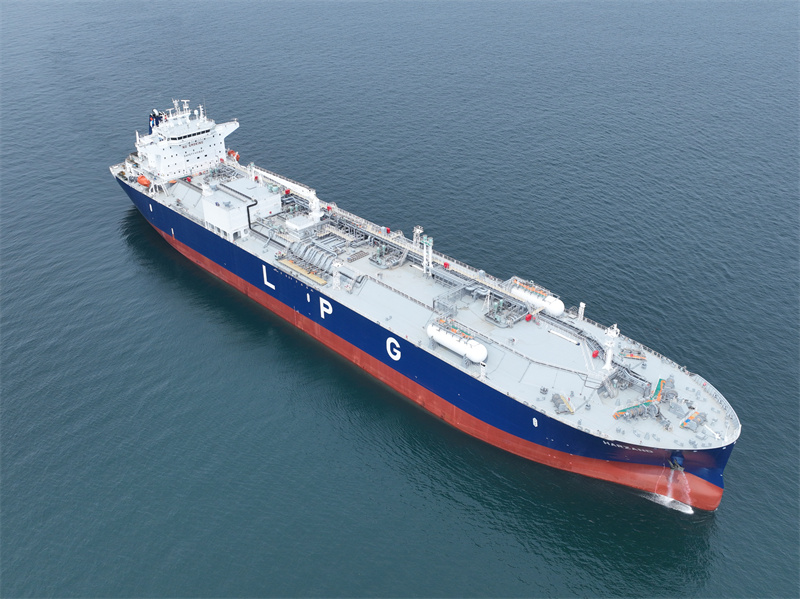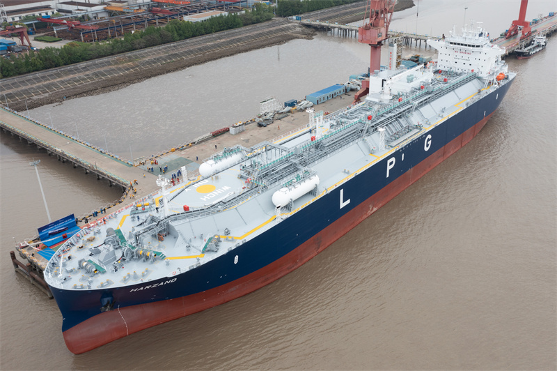 Named Harzand, the vessel is 230 meters long and 36.6 meters wide. It is the first of the fourth-generation VLGC-type ship independently developed and designed by Jiangnan Shipyard. In addition, it is the world's largest dual-fuel liquefied petroleum gas powered VLGC, according to Dong Sanguo, chief designer for the VLGC.