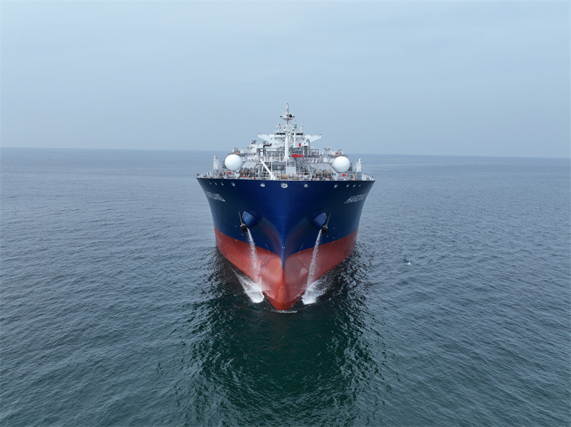 The vessel, capable of carrying up to 93,000 cubic meters of liquefied gas, complies with the latest regulations and requirements on emissions in light of eco-friendly concerns, according to Jiangnan Shipyard, subsidiary of the world's largest shipbuilder China State Shipbuilding Corp.