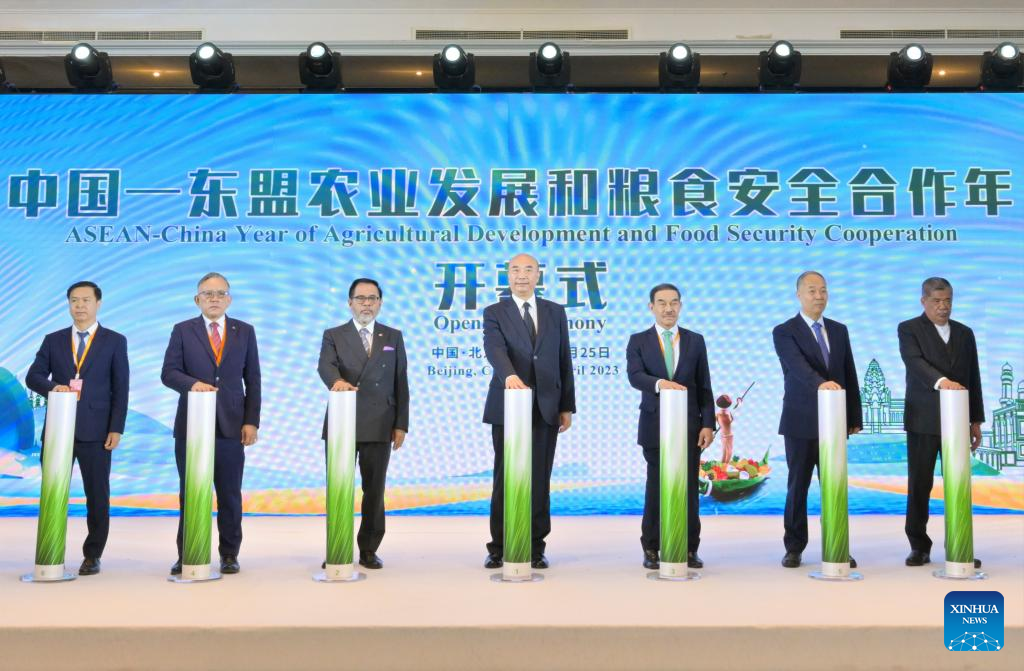 Chinese Vice Premier Liu Guozhong, also a member of the Political Bureau of the Communist Party of China Central Committee, attends the opening ceremony of the ASEAN-China Year of Agricultural Development and Food Security Cooperation in Beijing, capital of China, April 25, 2023. (Xinhua/Gao Jie)