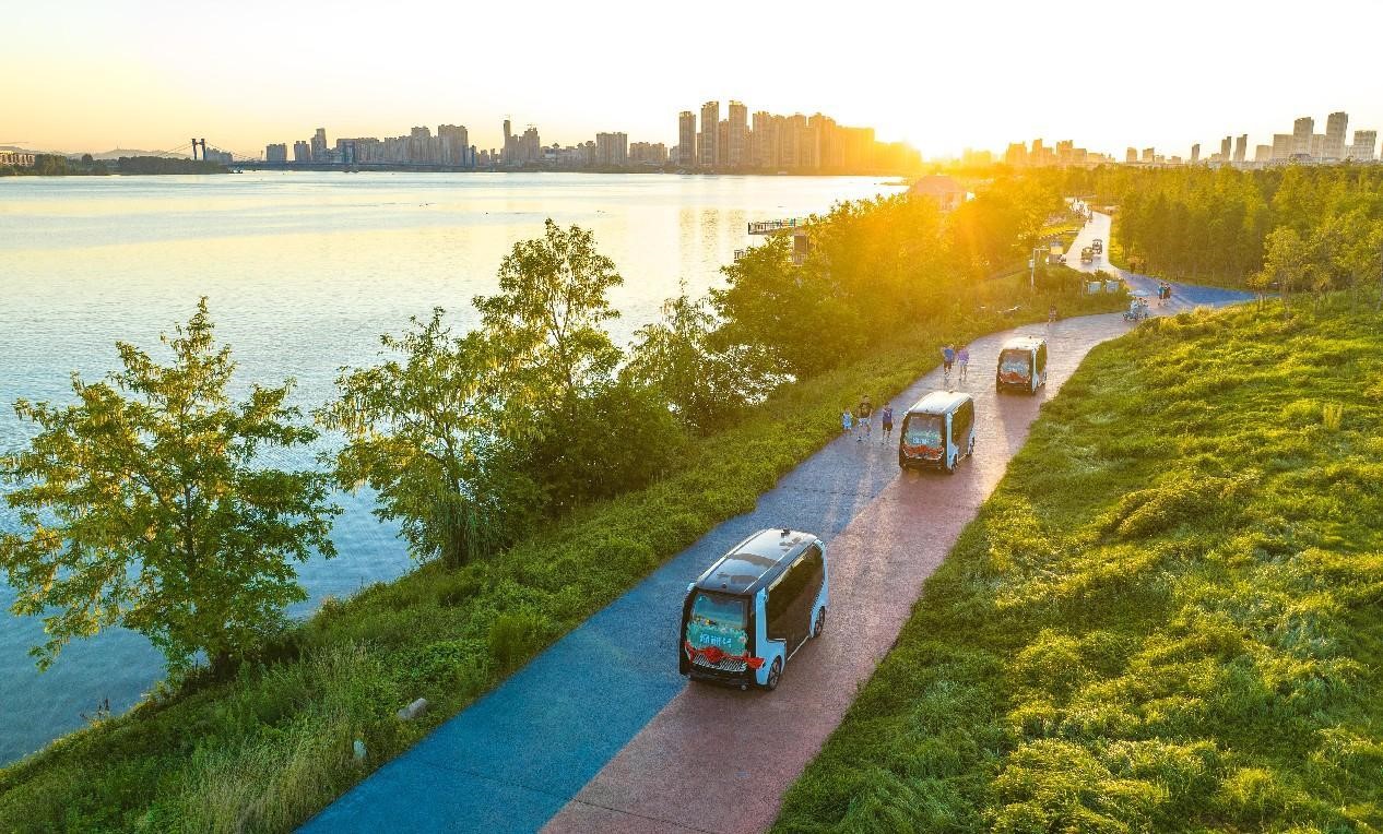 Autopilot new energy buses run in a scenic spot in Xiangyang, central China's Hubei province. (People's Daily Online/Yang Dong)