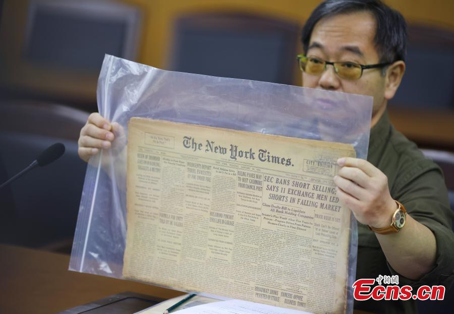 The New York Times published in on January 25, 1938 is donated to the Memorial Hall of the Victims of the Nanjing Massacre by Japanese Invaders in Nanjing, east China's Jiangsu Province, April 26, 2023. (Photo: China News Service/Yang Bo)