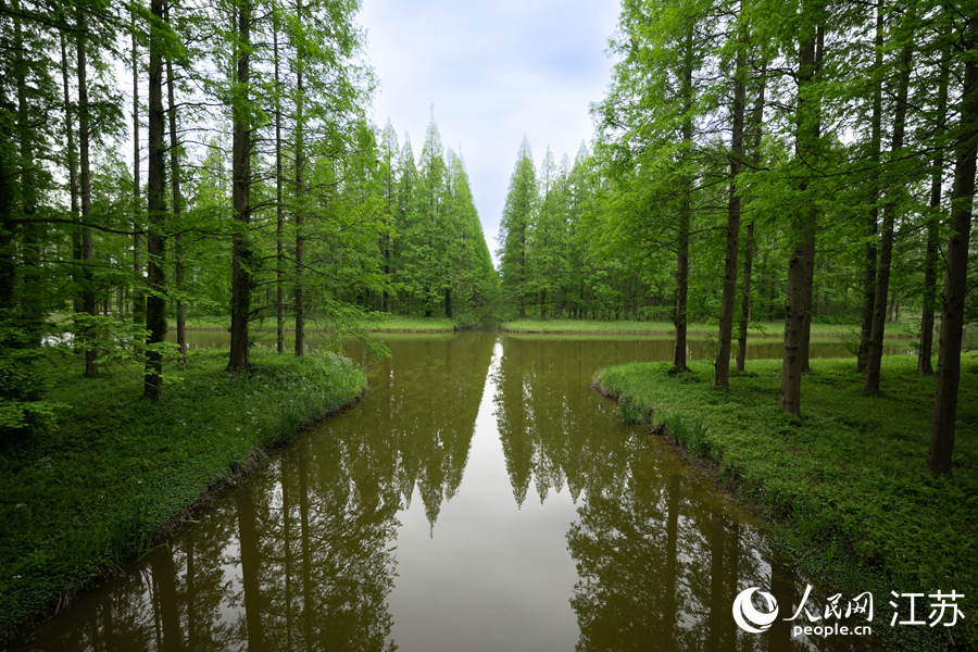 Photo shows a metasequoia forest in the Yellow Sea National Forest Park in Yancheng city, east China's Jiangsu Province. (People's Daily Online/Ma Taotao)