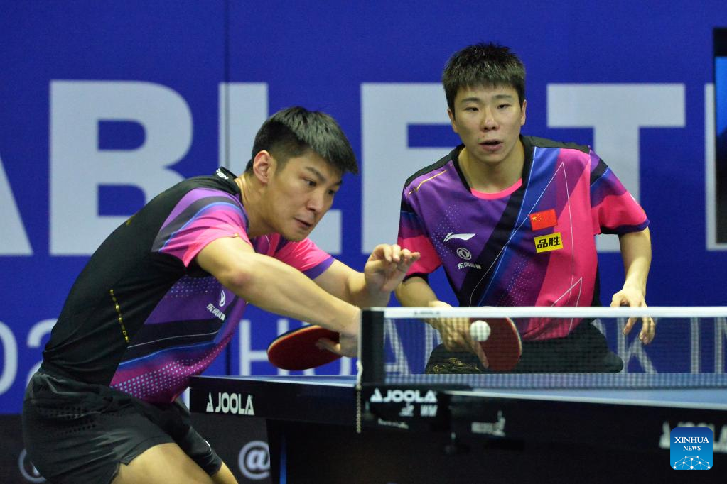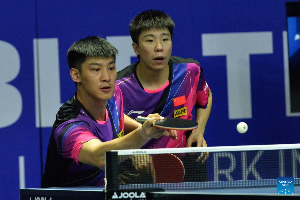 Xu Yingbin (L)/Xue Fei of China compete during the men's doubles semifinal match against Lim Jonghoon/Jang Woojin of South Korea at the World Table Tennis (WTT) Star Contender Bangkok 2023 in Bangkok, Thailand, on April 27, 2023. (Xinhua/Rachen Sageamsak)