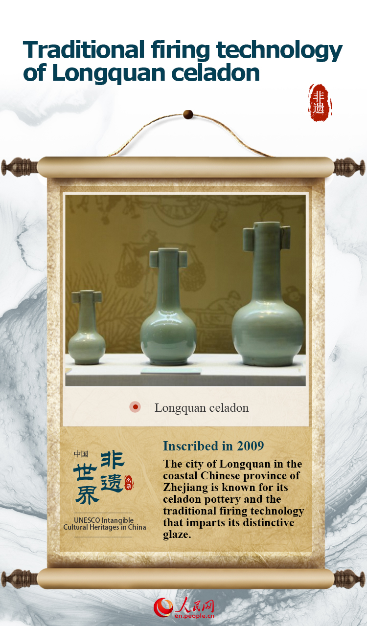The item, "Traditional firing technology of Longquan celadon" was inscribed on UNESCO's Representative List of the Intangible Cultural Heritage of Humanity in 2009.