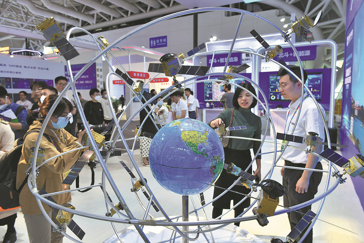 A model of the Beidou Navigation Satellite System is exhibited at the 6th Digital China Summit in Fuzhou, Fujian province, on Thursday. [PHOTO/CHINA NEWS SERVICE]