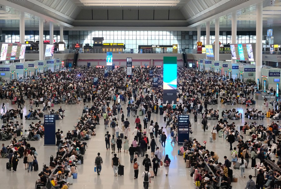 Passengers wait to board trains at Nanning East Railway Station in Nanning, south China's Guangxi Zhuang Autonomous Region, April 29, 2023. (Xinhua/Zhou Hua)