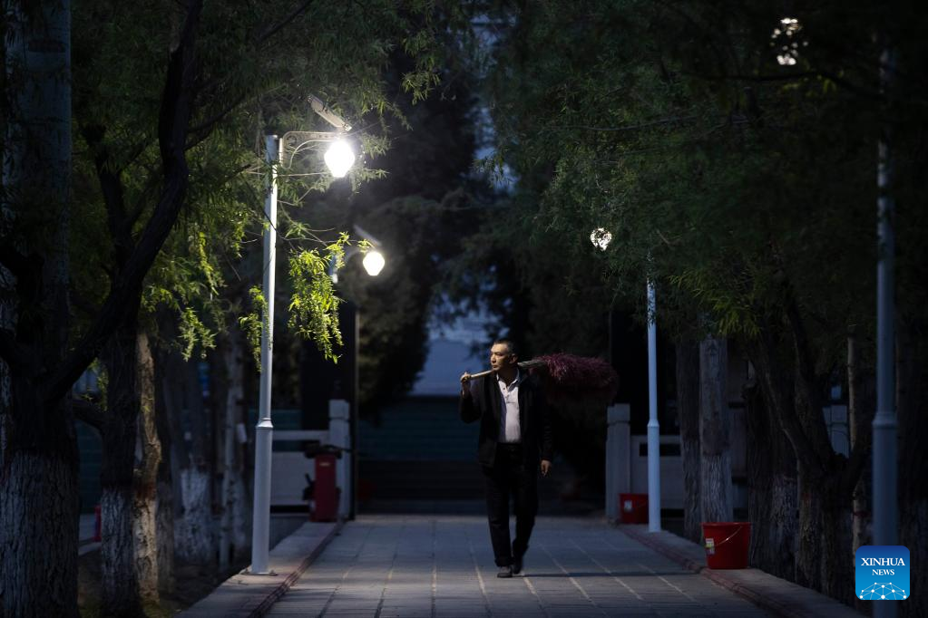 Eniwar Emer walks in Yecheng Martyrs Cemetery before dawn in Yecheng, northwest China's Xinjiang Uygur Autonomous Region, April 16, 2023.