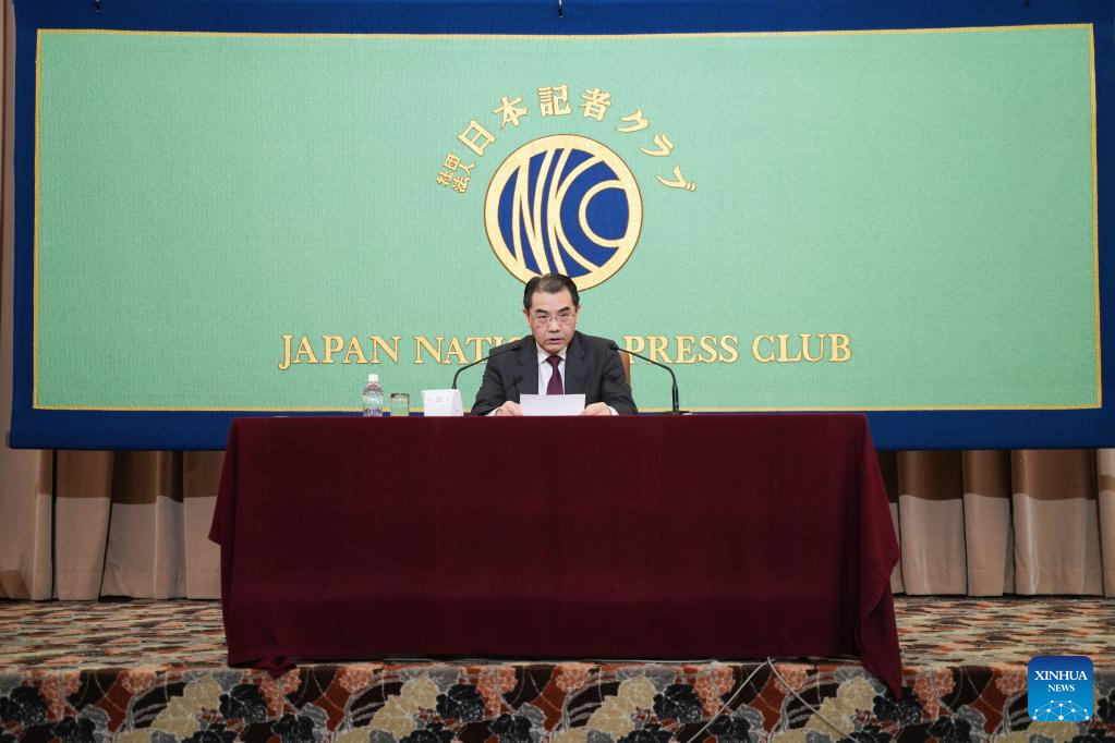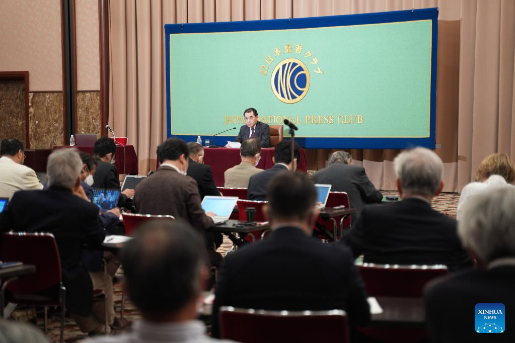 Chinese Ambassador to Japan Wu Jianghao speaks during a press conference at the Japan National Press Club in Tokyo, Japan, April 28, 2023. Japan should have a correct understanding of China from the root, adopt strategic independence, understand the trend of the times, and truly promote the stable development of bilateral relations with a constructive attitude, Chinese Ambassador Wu Jianghao said. (Xinhua/Zhang Xiaoyu)
