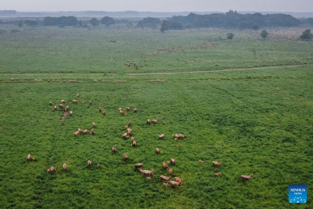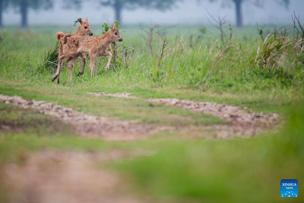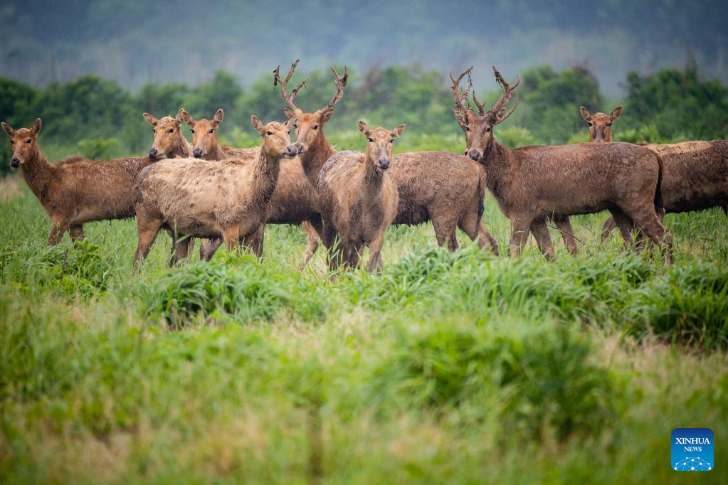 Close to the Yangtze River, the area has a complete wetland ecosystem and vast pastureland, which is an ideal habitat for milu deer.