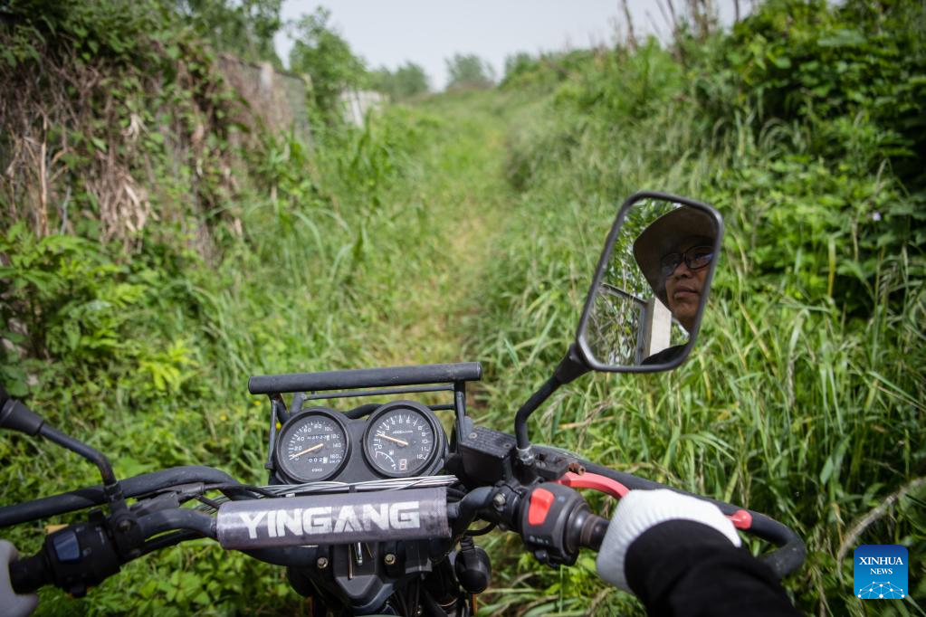 Ranger Wang Chuanjun patrols at Shishou Milu Deer National Nature Reserve in central China's Hubei Province, April 29, 2023. (Xinhua/Wu Zhizun)